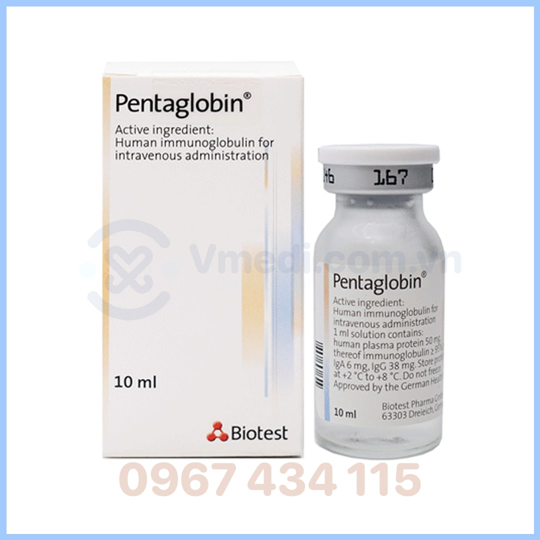 Thuốc Pentaglobin là một dung dịch tiêm truyền được phát triển để cung cấp globin miễn dịch cho những người trải qua tình trạng suy nhược cơ thể hoặc giảm chức năng miễn dịch. Sản xuất bởi tập đoàn Dược phẩm Biotest Pharma GmbH, Đức, Pentaglobin đã nhận được giấy phép lưu hành tại Việt Nam từ Công ty cổ phần Thương mại Dược Hoàng Long, với số đăng ký QLSP-0803-14 và được gia hạn với số 5077/QLD-ĐK ngày 8/4/19. Thuốc Pentaglobin được bào chế với 2 dung tích là 10ml và 50ml.